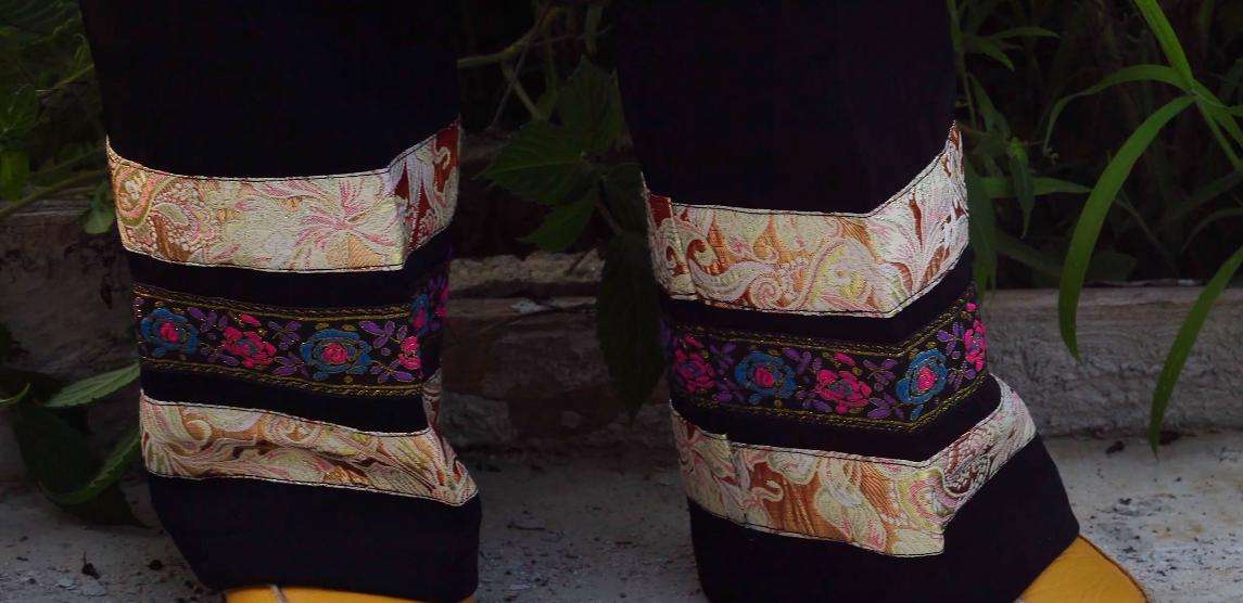 傳統(tǒng)服飾是由布依族傳統(tǒng)工藝制作而成,其上衣以藍(lán)色打底的斜襟衣和白色打底的圍腰為主,上衣對襟處繡有花草圖案作為裝飾,圍腰上部也繡有花草圖案作為描邊。下身則以黑色長褲和灰色長褲為主,衣飾上所有的雕花刺繡圖案全部出自之手。多從市場上購買。其上身對襟處和圍腰上部也繡有花紋圖案,但是這些花紋圖案則是現(xiàn)代機器之功,下身以黑色打底的長褲為主,在褲腳處繡有花草圖案,上板村布依族女性們還有一個習(xí)慣,就是不管是穿戴傳統(tǒng)服飾還是現(xiàn)代服飾都會戴有黑色圓帽?! ?/p>