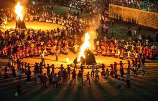 對(duì)太陽的崇拜造就了彝族人民的自然崇拜,那就是與太陽最為相關(guān)的火焰,因此“火”自然就成為了彝族人追求光明的象征。在彝族地區(qū),對(duì)火的崇拜與祭祀非常普遍,每年農(nóng)歷六月二十四至二十七日就是彝族人民的“火把節(jié)”,云南瀘西縣彝族還會(huì)在正月初一和六月二十四,由家庭主婦選一塊最肥的肉扔進(jìn)燃燒的火塘祈禱火神護(hù)佑平安。