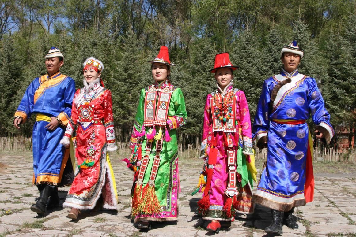 裕固族服飾大致可分為婦女服飾、未婚女子服飾和男子服飾三類。婦女服飾上有“衣領(lǐng)高、帽紅纓”的特征,婦女的帽子特點鮮明,東部各部落的婦女帽子形似禮帽,但頂部呈小圓頂形;西部各部落婦女帽頂則是尖頂,帽沿后部卷起。紅纓帽一般以芨芨草編織或羊毛搟制帽胚,用紅布做帽里,白布做帽面,帽沿為鑲有花紋的黑邊,帽頂配有紅纓,故稱“紅纓帽”。裕固族婦女服飾中的頭面是一件非常精制而價值昂貴的民間工藝品,用銀牌、珊瑚、瑪瑙、彩珠、貝殼等穿綴而成,共分三條,胸前左右兩條,背后一條。頭面也是裕固族已婚婦女和少女的區(qū)別標志,婦女出嫁成婚后方可戴頭面。裕固族男子服飾也有其獨特之處,頭戴金邊白氈帽,帽沿后邊卷起,身穿大領(lǐng)偏襟長袍,衣料大多以布、綢、緞或褐子、獸皮為主,扎彩色腰帶,佩有腰刀、火鐮、鼻煙壺、煙荷包等飾品。裕固族有專門的婚禮服飾,色彩和配飾都有一定的規(guī)矩和要求。
