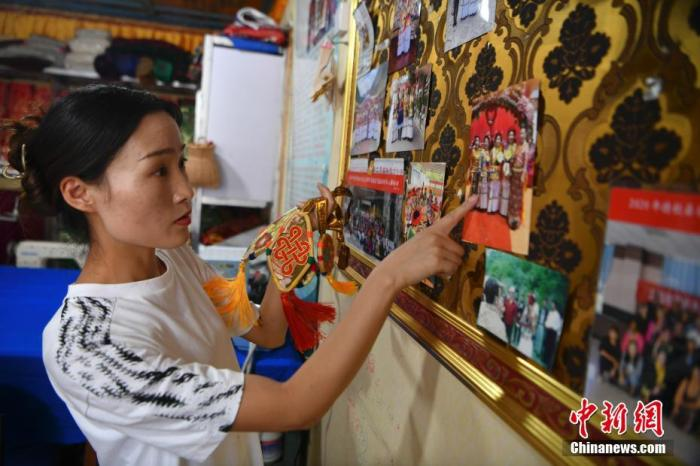 7月22日,提美的女兒邊宗向記者介紹她制作的配飾。 中新社記者 劉冉陽(yáng) 攝