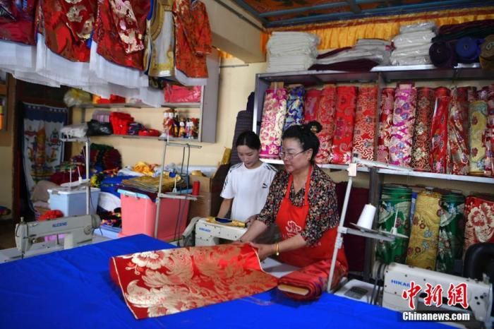 如今,年輕的邊宗正式繼承了母親提美的衣缽,成為藏服制作傳承人。邊宗一邊縫制衣服一邊對(duì)記者說(shuō),藏服工序繁雜,一會(huì)兒要手工,一會(huì)兒又要裁剪,一會(huì)兒又機(jī)器縫……