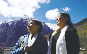 卓嘎(左)、央宗姐妹倆在一起。 新華社記者 普布扎西攝