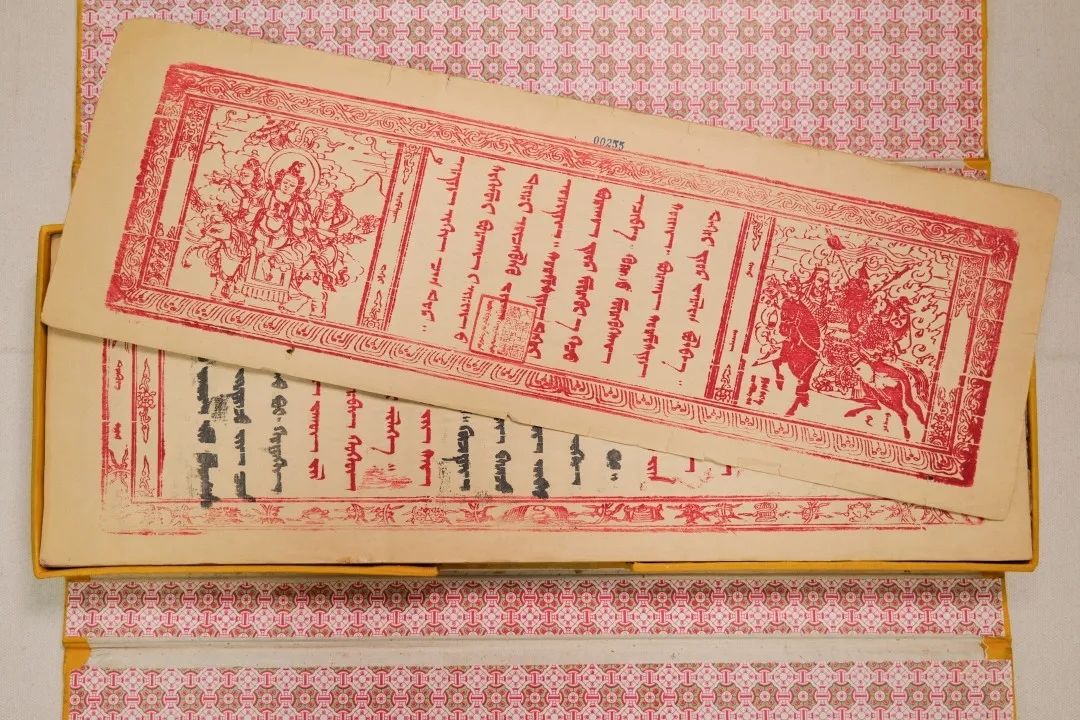 今天我們主要講述的是1716年北京木刻本蒙古文《格斯?fàn)杺鳌罚ㄈQ為《十方圣主格斯?fàn)柨珊箓鳌罚┦乔蹇滴跷迨迥辏?716)北京木刻本。梵夾裝,1卷(176葉),每頁26行,每行6個字,約5萬多字,頁面高17.2cm、寬52cm,版框高13.5cm、寬46.5cm。版框左側(cè)有漢文《三國志》三字,首頁刻有朱印佛像。