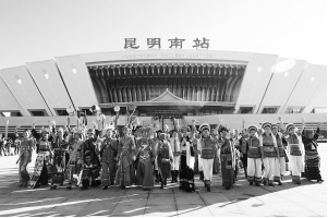 云南探索“高鐵沿線創(chuàng)建聯(lián)盟”等創(chuàng)新做法,全面深入持久開展民族團結(jié)進步創(chuàng)建工作。圖為各族群眾在慶祝高鐵開通儀式上載歌載舞。云南省民宗委供圖
