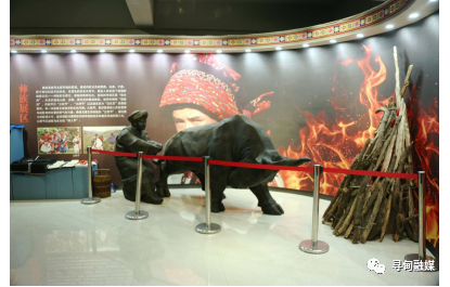 2.彝族展區(qū): 彝族是最早定居尋甸的民族,縣境內(nèi)的支系有黑彝、白彝、干彝,距今有3000多年的歷史。在漫長(zhǎng)的歷史長(zhǎng)河中,彝族人民創(chuàng)造了璀璨的地域文化——神秘的古彝文,原始的祭祀禮儀,別致的傳統(tǒng)民居“垛木房”,古老的彝族山歌、古歌、彝族舞蹈,獨(dú)特的婚俗“拖媳婦”,傳統(tǒng)節(jié)日“立秋節(jié)”、“火把節(jié)”以及被美譽(yù)為“活化石”的彝族服飾,每一項(xiàng)都蘊(yùn)含著極深的文化內(nèi)涵;火把節(jié),象征著彝族人民的激情與戰(zhàn)勝自然災(zāi)害的勇氣和力量;彝族戈濮支系的獨(dú)創(chuàng)“立秋節(jié)”,通過(guò)盛大的秋場(chǎng)斗牛、夜間情歌對(duì)唱等形式將豐收的歡樂(lè)和喜悅傳遞四面八方。