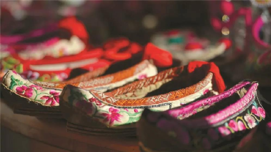 白族刺繡講究圖案和色彩搭配,運(yùn)針細(xì)密均勻,圖案大方形象,繡在服飾上或單獨(dú)作為繡品,都是一件精美的藝術(shù)品。