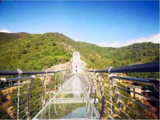 沿著木棧道,一路緩緩而行。滿山遍野的綠撲面而來,自然生長的白樺林,依山而建的鱗次櫛比的小木屋,78米高212米長的玻璃棧道,2萬平方米的水上樂園……人與景相依相融,林胡古塞處處充滿著現(xiàn)代與古樸結(jié)合的畫面。