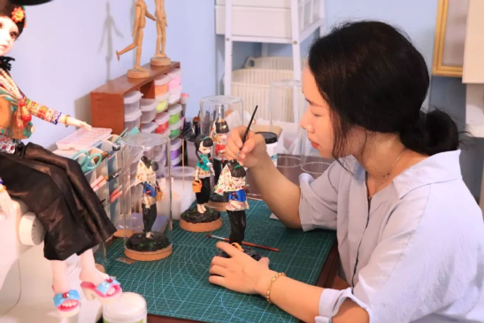讓人驚艷的,還原度無比高的作品人物服飾,這其中還有冰冰媽媽的一些的建議呢,雕雕琢琢,便有了生動形象的這些精致作品。聊起整個創(chuàng)作過程的冰冰,笑盈盈地說:創(chuàng)作粘土惠女作品,是一件讓我感到滿足和幸福的事情。之后也會持續(xù)創(chuàng)新,精益求精地進行創(chuàng)作。