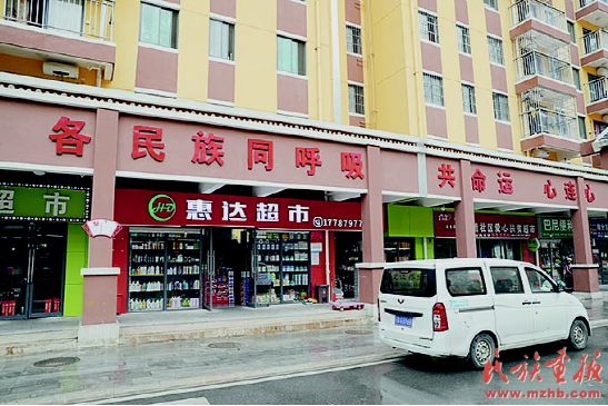 民族團(tuán)結(jié)標(biāo)語在和諧社區(qū)隨處可見。