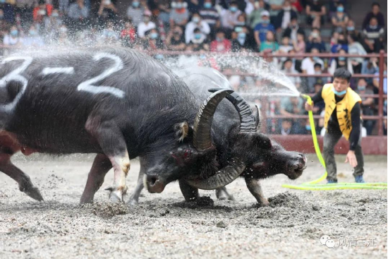 ·2020年5月1日,廣西三江侗族自治縣在縣城侗鄉(xiāng)鳥巢舉行中國侗族“月也”牛王節(jié)活動(dòng),以祈福游行、牛王爭霸賽等形式盡展侗鄉(xiāng)風(fēng)情,14頭牛王輪番登場激戰(zhàn),讓觀眾大呼過癮。今年五一,三江在精心豐富文化旅游業(yè)態(tài)的同時(shí),全力加強(qiáng)客流管控,嚴(yán)防人員聚集,有序引導(dǎo)游客間隔入園、錯(cuò)鋒旅游,力促疫情防控和文旅復(fù)蘇“兩不誤”,助力侗鄉(xiāng)文化旅游“回暖升溫”。