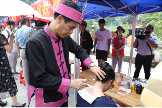 本次活動以2020年“文化和自然遺產(chǎn)日”的“非遺傳承,健康生活”為主題,重點(diǎn)圍繞傳統(tǒng)醫(yī)藥項(xiàng)目保護(hù),普及“非遺”知識和健康生活理念,營造全社會共同參與、關(guān)注和保護(hù)傳承優(yōu)秀傳統(tǒng)文化濃厚氛圍而開展。邀請十位瑤醫(yī)藥傳承人帶領(lǐng)40多位瑤醫(yī)弟子各顯神通,在現(xiàn)場開展非遺項(xiàng)目義診活動,為游客免費(fèi)問疹,展示泡藥療法、針灸療法、燈草療法、坐浴療法、拉伽通灸療法等10種技法?,幷锩恳粦羧思夷贸瞿檬纸^活在自家進(jìn)行現(xiàn)場展示,黃泥鼓制作、樹葉豆腐制作、瑤族織繡技藝、釀酒技藝、舂糍粑、原創(chuàng)歌曲展示等,豐富多彩的各種技藝,讓游客流連忘返。