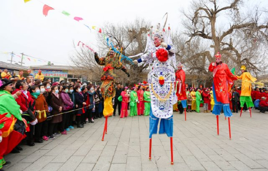 踩高蹺、秧歌、舞獅、腦閣、天倉舞、二人臺.....一個個精彩紛呈又獨具特色的民間傳統(tǒng)表演吸引著十里八鄉(xiāng)的村民和慕名而來的市民。大家或跟著哼唱著民間小曲,或拿出手機拍攝精彩演出,一個個寫滿了幸福的笑臉在討思浩村廣場競相綻放。