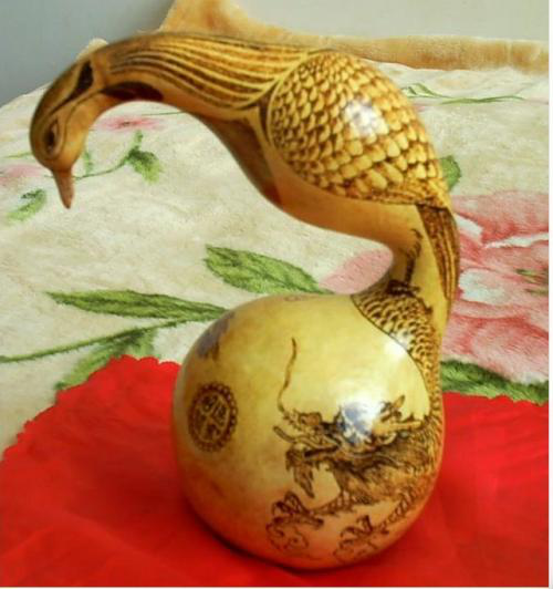 甘肅臨夏雕刻葫蘆是民族傳統(tǒng)工藝美術(shù)品的杰出代表,以其品種豐富、色澤黃白、皮質(zhì)華潤光潔,雕刻栩栩如生而聞名。葫蘆雕外形呈橢圓形或S形,表面多以雕刻山水人物、文字等,再飾以松墨,十分美觀。臨夏葫蘆雕刻經(jīng)過十幾代雕刻藝人的不懈藝術(shù)探索,形成了其獨特的藝術(shù)風格、別致的造型和卓越的技藝,堪稱甘肅“隴上一絕”,成為臨夏對外交往的一張文化名片,具有極高的觀賞和收藏價值。