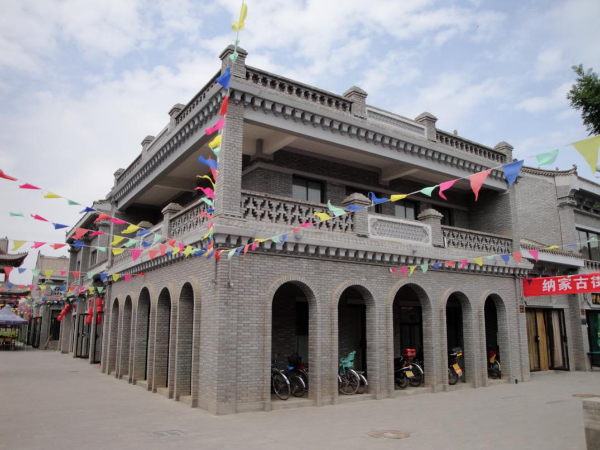 中華回鄉(xiāng)第一街位于永寧縣納家戶北側(cè)。該項(xiàng)目以納家戶清真大寺為中心擴(kuò)展門前廣場,以廣場為中心向北,直北長380米,東西寬107米,占地面積93.78畝,建筑面積1.6萬平方米,建成商鋪177套。所有建筑遵循當(dāng)?shù)鼗刈宓慕ㄖL(fēng)格,采用青磚砌筑,尤其在細(xì)節(jié)處理上用符號(hào)、色調(diào)與裝飾來表現(xiàn)回族建筑的精髓。雕梁畫棟,飛檐四出,并且在墻壁、牌坊、檐口、山墻等處運(yùn)用了大量磚雕、伊斯蘭花飾等將伊斯蘭文化藝術(shù)與中國傳統(tǒng)建筑風(fēng)格有機(jī)的結(jié)合在一起,為景區(qū)增加了濃郁的歷史文化氛圍。該街道由北向南依次分為土特產(chǎn)區(qū)、民俗文化區(qū)、旅游紀(jì)念區(qū)、餐飲區(qū)、配套商業(yè)區(qū)五大功能區(qū)。