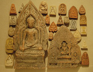 在泰國最北邊的城市清萊的一座古寺里,年長的僧人告訴我,在泰國,帕肯(“泰國擦擦”,泰語為“Phra-Kruang”,這個(gè)名詞在標(biāo)準(zhǔn)的泰文詞典里的解釋是:用于避兇消災(zāi)的小型佛像,作用相當(dāng)于護(hù)身符、祈愿物、供奉物。泰國的Phra-Kruang至今沒有一個(gè)公認(rèn)的中文名稱,既然“擦擦”是譯音,我便挑了兩個(gè)最接近泰語Phra-Kruang發(fā)音的字給它:帕肯)的使用方式是這樣的:最早是在修建寺廟的時(shí)候放入佛塔內(nèi),因?yàn)楣排量系膬?nèi)容全是佛像,經(jīng)過高僧們開光后放入塔內(nèi)有增加靈氣的作用。百姓通常是到寺廟請(qǐng)回自己需要的帕肯回家供奉,或者作為還愿,出資請(qǐng)寺廟制作一定數(shù)量的帕肯,供奉在寺廟、家中或者贈(zèng)送親友。
