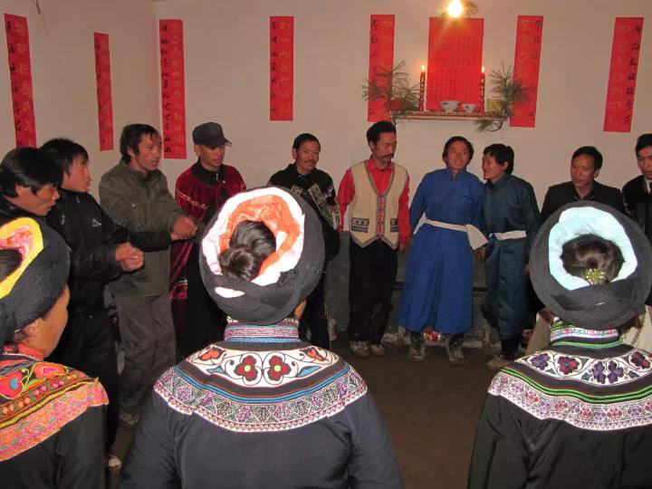 3、源自于宗法禮教。在阿買懇的唱詞中,有阿買懇是君長制定的規(guī)矩之說,根據(jù)彝族典籍文獻記載和民間傳說,反映古代彝族水西君長家和烏撒君長聯(lián)姻嫁娶時,都興阿買懇,說明阿買懇是君長興起這一說法是由根據(jù)的。彝族是一個很重視宗法禮教的民族,各種禮儀習俗和規(guī)章制度比較細密而嚴格,作為人生重大禮儀的婚儀,必然有許多規(guī)矩,阿買懇的幾十項程序性對答吟誦,就足以說明了這一點。但它也并非完全是“君長制定的規(guī)矩”,它更多的是百姓的禮俗和情趣,因為,在阿買懇唱詞中反映的勞動場景的內(nèi)容很多。實事求是的講,阿買懇應(yīng)該是由君長所倡導和認可,由廣大彝族民眾興起,經(jīng)布摩和民間歌師共同創(chuàng)作、經(jīng)民眾在演唱過程中反復修訂而形成的。