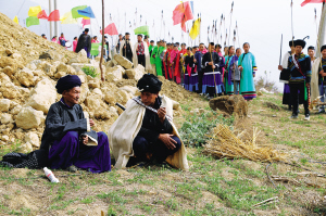 儀式當(dāng)天,各家各戶的父母給自家的孩子穿上新裝;孩子們則削木為刀,編草為穗,插玉米芯做矛頭,剝玉米皮當(dāng)纓槍,用竹籃背著用麻籽和燕麥炒制的干糧,從四面八方趕來,聚集在一起。