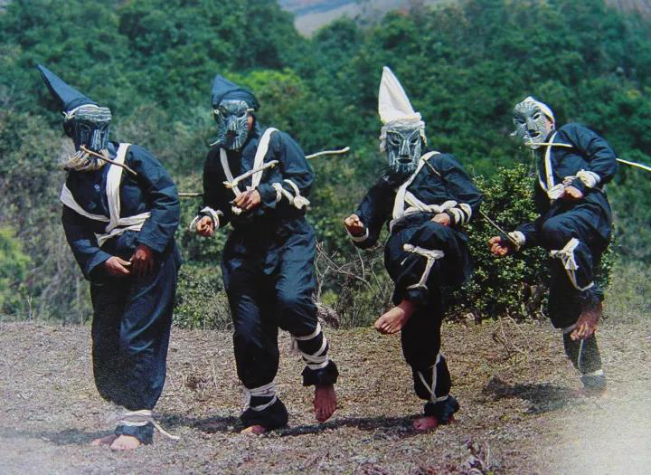 “撮泰吉”是彝語的稱謂,屬于彝族的一種古戲,譯意為“變?nèi)说膽颉?,是彝族重要的原始宗教信仰和民族風情習俗。每當春節(jié)期間正月初三至十五和六月二十四至二十六的火把節(jié)期間,貴州最高峰韭菜坪山脈一帶的赫章、威寧彝族同胞就會演出《撮泰吉》,舉行“掃火星”的驅(qū)邪納吉活動儀式,祈求火災、瘟疫遠離人們,讓平安幸福永遠伴隨彝家。演出的內(nèi)容有祭祀祖先、民族遷徙、拓荒耕種、買賣牲畜、交配繁殖后代等,最后才逐戶為全寨掃除火星。