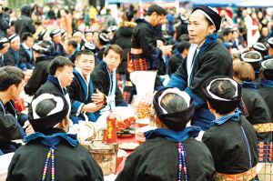 每逢重要節(jié)日,白褲瑤群眾都有舉辦長(zhǎng)席宴的習(xí)俗。以前,芭蕉葉當(dāng)作盤子,芭芒干折成筷子,一個(gè)飯團(tuán)、一塊牛肉,再加一碗酒,就是長(zhǎng)席宴的全部。現(xiàn)在改變了很多,但不變的是白褲瑤自然、和諧、平等的美德。2019年2月拍攝。