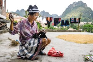 白褲瑤服飾制作需要幾個(gè)月的時(shí)間,經(jīng)過(guò)紡紗、織布、描圖、蠟染、刺繡、縫制等30多道工序,其中許多工序都受季節(jié)和天氣變化的影響。