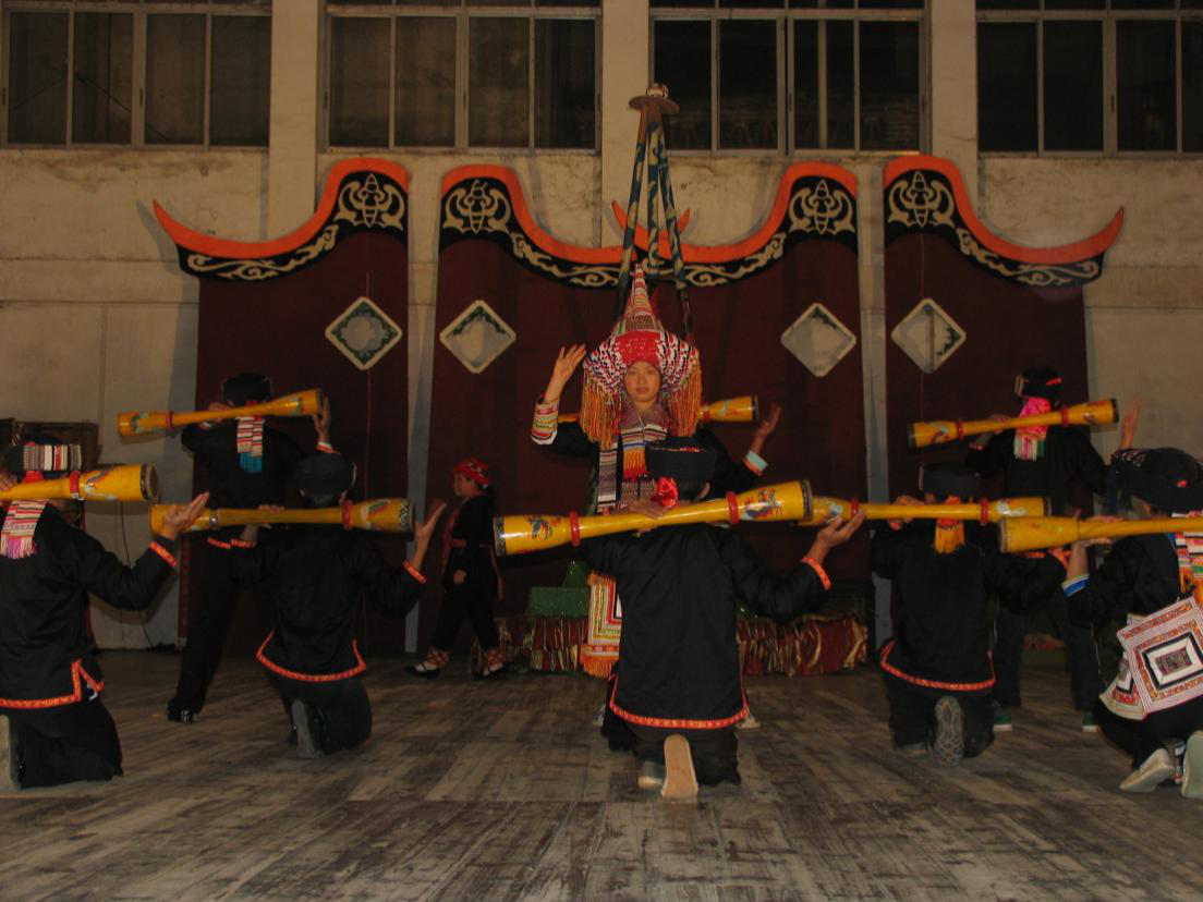 瑤族人民在節(jié)日慶典活動上用民族樂器演出(劉軍攝)