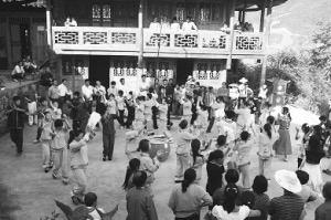 從古至今,每年的正月初九“舍巴節(jié)”(舍巴:土家語擺手舞的意思)、三月三“祭祖節(jié)”、“冬至?xí)?,土家人都要在擺手堂舉行盛大的祭祀活動。農(nóng)閑時的夜晚,在農(nóng)家院壩,點燃熊熊篝火,男女老少在有奏的鑼鼓聲中歡快地舞蹈,盡情地歌唱。清代文人彭施鐸在《竹枝詞》中載:“福石城中錦作窩,土王宮前水生波,紅燈萬盞人千疊,一片纏綿擺手歌。”寥寥數(shù)語把土家人跳擺手舞的盛況真實地展現(xiàn)出來。