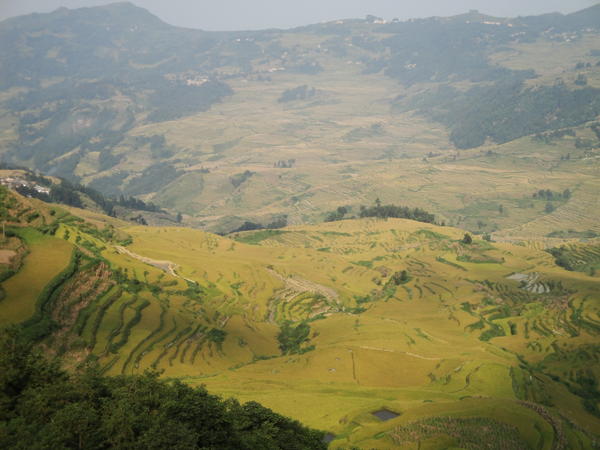 元陽(yáng)哈尼族開(kāi)墾的梯田隨山勢(shì)地形變化,因地制宜,坡緩地大則開(kāi)墾大田,坡陡地小則開(kāi)墾小田,甚至溝邊坎下石隙也開(kāi)田,因而梯田大者有數(shù)畝、小者僅有簸箕大,往往一坡就有成千上萬(wàn)畝。元陽(yáng)梯田規(guī)模宏大,氣勢(shì)磅礴,綿延整個(gè)紅河南岸的紅河、元陽(yáng)、綠春及金平等縣,僅元陽(yáng)縣境內(nèi)就有17萬(wàn)畝梯田,是紅河哈尼梯田的核心區(qū)。元陽(yáng)縣境內(nèi)全是崇山峻嶺,所有的梯田都修筑在山坡上,梯田坡度在15度至75度之間。以一座山坡而論,梯田最高級(jí)數(shù)達(dá)3000級(jí),這在中外梯田景觀中是罕見(jiàn)的。元陽(yáng)哈尼梯田主要有3大景區(qū):壩達(dá)景區(qū)包括箐口、全福莊、麻栗寨、主魯?shù)冗B片14000多畝的梯田;老虎嘴景區(qū)包括勐品、硐浦、阿勐控、保山寨等近6000畝梯田;多依樹(shù)景區(qū)包括多依樹(shù)、愛(ài)春、大瓦遮等連片上萬(wàn)畝梯田。如此眾多的梯田,在茫茫森林的掩映中,在漫漫云海的覆蓋下,構(gòu)成了神奇壯麗的景觀。這些景區(qū)就是目前準(zhǔn)備申報(bào)世界遺產(chǎn)的核心保護(hù)區(qū)。