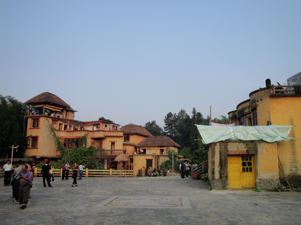 房屋建筑一般是土、木結(jié)構(gòu)的兩層樓房,墻基用石塊從地下半米深入砌至高出地面半米,便從基石上用土坯砌墻,用堅(jiān)實(shí)的圓形或方形木柱支撐屋檐或門樓。