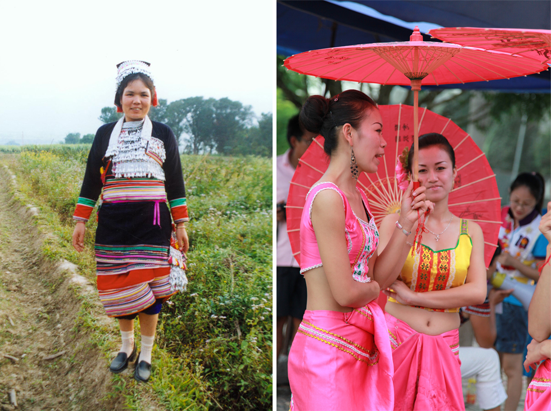 元江傣族民國時(shí)期銀泡土布女服與德宏傣族民國時(shí)期花綢織錦男服