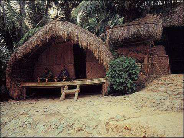 船型屋作為黎族最古老的民居,有高架船型屋與低架(落地式)船型屋之分,其外形像船篷,拱形狀,用紅、白藤扎架,拱形的人字屋頂上蓋以厚厚的芭草或葵葉,幾乎一直延伸到地面上,從遠處看,猶如一艘倒扣的船。其圓拱造型利于抵抗臺風的侵襲,架空的結(jié)構(gòu)有防濕、防瘴、防雨的作用,茅草屋面也有較好的防潮、隔熱功能。而且能就地取材,拆建也很方便。鑒于這些優(yōu)點,船形屋得以世代流傳下來。
