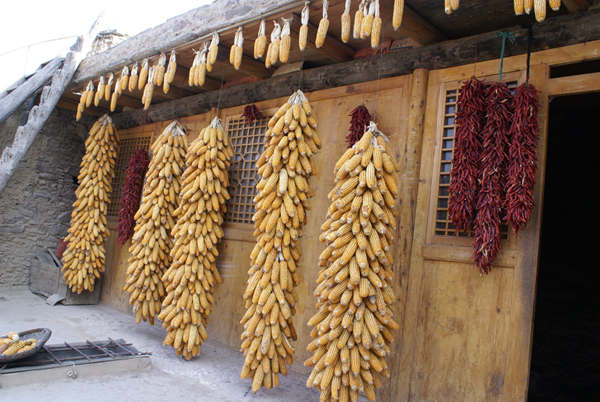 羌族人在自家小院里儲(chǔ)存的食物(劉軍攝)