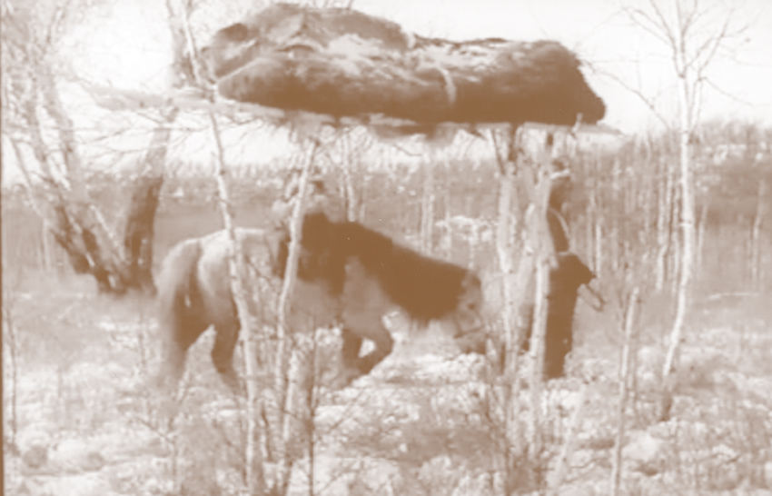 鄂倫春族的傳統(tǒng)葬法主要有風(fēng)葬、土葬、火葬和水葬。風(fēng)葬又稱天葬或樹葬,其葬法是:選擇四棵成對角的大樹,在距地面1米多高的地方截斷,上面搭木架或借助樹杈放棺材。成年人風(fēng)葬后通常還要進行二次葬,即將其遺骨再土葬到氏族墓地里。游獵時期由于條件所限棺材非常簡陋,最初風(fēng)葬是借助樹杈搭木架,把死者安放在木架之上,再用樹枝覆蓋。土葬是挖一個長方形土坑,四壁用木桿壘起來,下面鋪草,上面蓋樺皮再埋土。后來人們用樺皮縫制或用柳樹條編制棺材,也有將空心樹從中間劈開,把尸體扣在中間的。最好的是“木刻楞”棺材,制作方式跟建造“木刻楞”房差不多,把截成長短適度的圓木兩頭砍成凸、凹形,使其相互咬合形成框架,底和蓋是用繩子或柳條把一些圓木排列著捆綁在兩根橫木上。這種“木刻楞”棺材堅固,不易被野獸破壞,多用于風(fēng)葬。