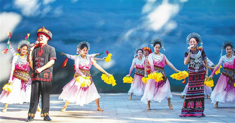 2021年白沙“啦奧門(mén)”山蘭文化節(jié)中的歌舞表演。李天平 攝