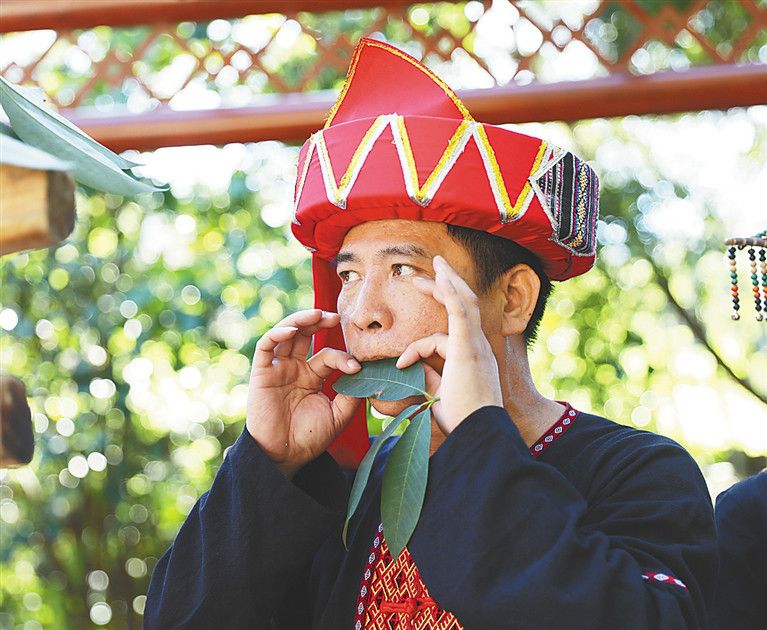 黎族群眾進(jìn)行“樂(lè)器”演奏。李天平 攝