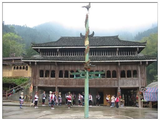 吊腳樓是苗族傳統(tǒng)建筑,是中國(guó)南方民族特有的古老建筑形式,樓上住人,樓下架空,被現(xiàn)代建筑學(xué)家認(rèn)為是最佳的生態(tài)建筑形式。吊腳樓是苗鄉(xiāng)的建筑一絕,它依山傍水,鱗次櫛比,層疊而上。是苗族最具特色的建筑。每棟木樓分上下兩層,按木樓的大小不同,下層從2-6排不等,因房子建在山坡上,地勢(shì)不同。里層一排為短柱,外面一排為長(zhǎng)柱,柱子的上截柱頭都鑿有“十”字眼,用粗方條連成整體,為了支撐木樓的重量,下層屋多選用粗大的老杉木作柱子。最為奇特的是上下兩層柱子在結(jié)構(gòu)上是截然分開的,各自成體系。建房的時(shí)候先建底層,再建上層。上層屋柱的柱腳全“坐”在下層柱頭向外伸出的橫梁尾端上,垂下來(lái)約有一尺來(lái)長(zhǎng)的柱腳就叫做“吊腳”。苗胞久住在高山,一年多數(shù)時(shí)間霧鎖云繞,但木樓較干燥,一般不容易患風(fēng)濕,但木樓較易燃燒,近年來(lái),較富的苗胞也興建磚混房,但模式仍有所雷同。木樓中廳,干凈整潔,寬敞明亮,它不僅是苗族吃飯、休息、祭祀的場(chǎng)所,也是苗族人民講故事、唱苗歌、吹苗笛、拉果哈和男女談情說(shuō)愛(ài)的地方。它成了苗族獨(dú)特的文化事象――火塘文化。