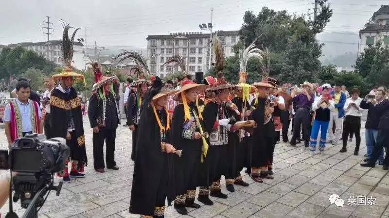 祭祖大典隆重、肅敬、莊嚴(yán)。儀式: 1、吹奏長(zhǎng)號(hào)樂(lè)、鳴禮炮,敬告天地東西南北中五方神抵;2、奏樂(lè)(長(zhǎng)號(hào)、噴吶),請(qǐng)彝族畢摩上香;3、奏樂(lè)(長(zhǎng)號(hào)、噴種),敬貢三牲,果品,圣水,豬頭,雞;4、請(qǐng)彝族畢摩撒五谷,念誦《散五谷詞》;5、彝族畢摩向祖先阿普駕幕行跪拜禮,恭誦《祭祖祈福經(jīng)》;6、請(qǐng)各地同胞代表恭誦《祭文》;7、請(qǐng)各位領(lǐng)導(dǎo)、各位來(lái)賓、各位朋友全體起立!向彝族祖先阿普篤幕及六祖行叩首禮:一鞠躬!再鞠躬!三鞠躬!禮畢!8、奏樂(lè)(長(zhǎng)號(hào)、噴吶),恭請(qǐng)貴賓敬獻(xiàn)高香。