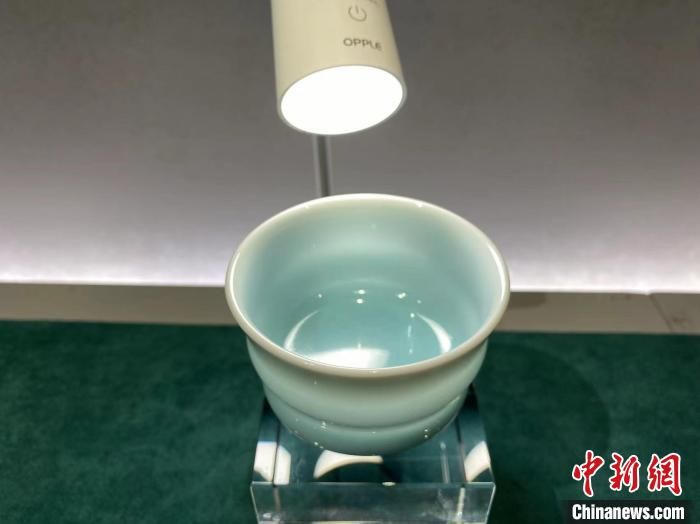 當(dāng)日展出的青瓷作品。 錢晨菲 攝