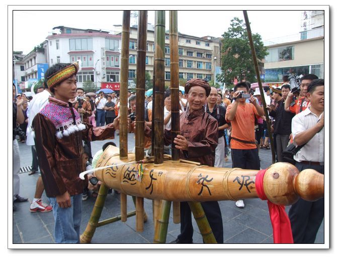 2008年,為慶祝北京奧運(yùn)會(huì)開幕,苗族著名蘆笙師傅梁炳光特制了一把高達(dá)10余米,重達(dá)240余公斤的蘆笙。這把號稱當(dāng)今蘆笙的王中王、世界蘆笙之最的蘆笙從備料到制作完成,梁師傅足足用了一個(gè)多月。這把蘆笙在北京奧運(yùn)會(huì)期間曾在融水民族廣場展示,萬人矚目。