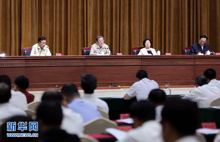 圖為7月10日,俞正聲出席第六次全國(guó)對(duì)口支援新疆工作會(huì)議第一次全體會(huì)議(新華社)
