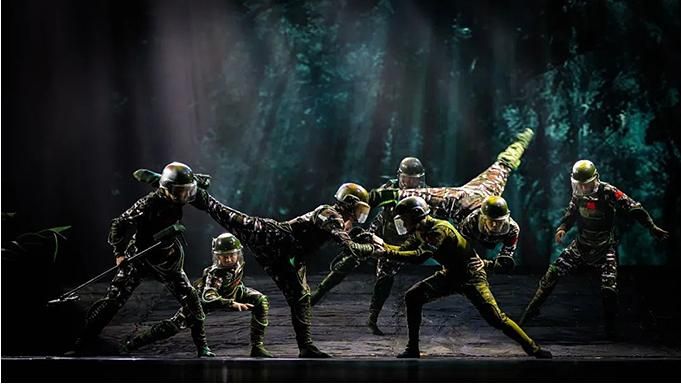 在舞劇敘事方式上,總編導(dǎo)之一董華興將民族性與現(xiàn)代性相互融合,嘗試了時(shí)空切割,段落重組,故事情節(jié)的倒敘、插敘,真實(shí)性與虛擬性相結(jié)合等方法。