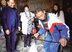 在村里修復(fù)舊屋的趙貢彩接到游客電話,馬不停蹄地趕回家中,自家手工制作的苕粉成了游客心心念念的香餑餑。拿出早已生銹的秤桿,一袋袋苕粉被游客搶著購(gòu)買?!岸际橇糁约页缘模南胫苜u出去喲?!毙χf(shuō)罷,趙貢彩拿出手機(jī),微信一掃,錢款立即到賬。