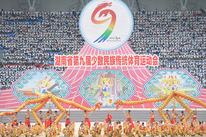 金風(fēng)送爽,丹桂飄香。10月16日至20日,湖南省第九屆少數(shù)民族傳統(tǒng)體育運(yùn)動(dòng)會(huì)在龍山縣舉行。本屆運(yùn)動(dòng)會(huì)以“龍山緣·民族情·中國(guó)夢(mèng)”為主題,由省民宗委、省體育局、湘西州人民政府主辦,龍山縣人民政府承辦,共有來(lái)自湖南省14個(gè)市州和17個(gè)民族縣市區(qū)組成的31個(gè)代表團(tuán)2631人參加,是湖南省歷屆少數(shù)民族傳統(tǒng)體育運(yùn)動(dòng)會(huì)規(guī)模最大、規(guī)格最高、參賽人數(shù)最多的一次。運(yùn)動(dòng)會(huì)期間,來(lái)自土家、苗、瑤、侗、白、維吾爾、壯、回、漢等22個(gè)民族的1991名運(yùn)動(dòng)健兒角逐高腳、秋千、板鞋競(jìng)速、射弩、陀螺、蹴球、押加、毽球以及民族健身操9大項(xiàng)60個(gè)小項(xiàng)的競(jìng)賽項(xiàng)目以及55個(gè)表演項(xiàng)目。