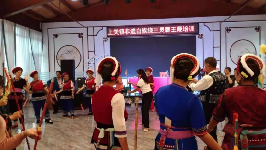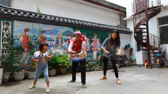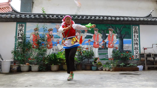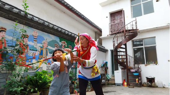 傳統(tǒng)文化時時學(xué),白族舞蹈代代傳。小小的霸王鞭看似簡單,里面卻包含了白族人民田間勞作的智慧。用自己的努力,言傳身教地教授霸王鞭,這愚公移山般的精神也是傳承人的智慧。“今天下午6點,我還要去江尾一趟,教他們的繞三靈團隊跳霸王鞭”,何松康說。