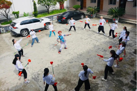在時間不沖突的情況下,每天下午的三點至五點何松康都會到慶洞完小教同學(xué)們打霸王鞭,身體力行傳承人“非遺進校園”的職責。此外,百川中學(xué)、銀橋中學(xué)等周邊學(xué)校都留下了何松康教霸王鞭的身影,“非遺傳承要從娃娃抓起”,這句話,她一直在踐行。