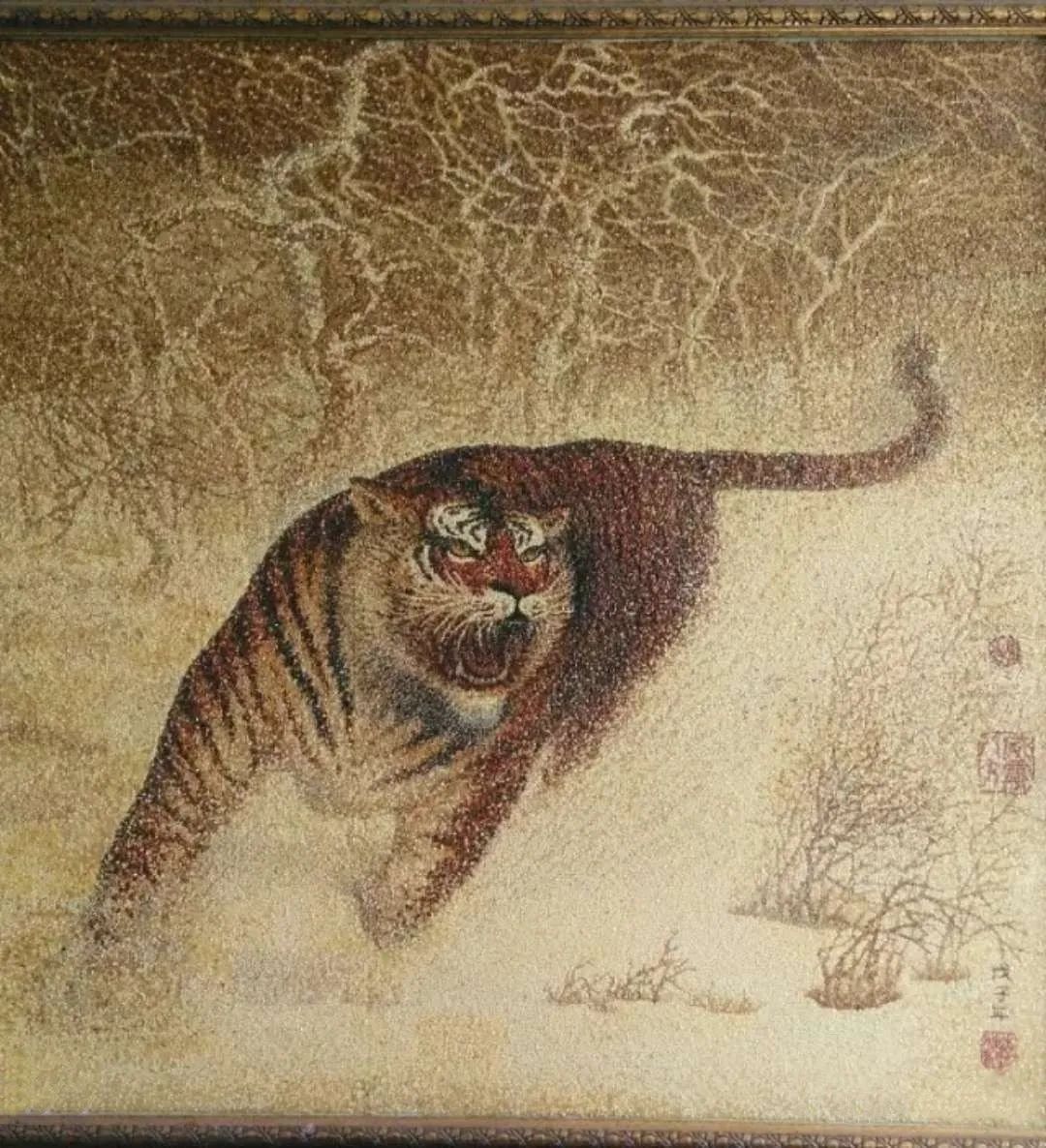 草原五谷畫起源于唐代,唐朝滅亡后的五代時期,流傳至中國北方,到了遼王朝建立后,開始在遼國中心區(qū)域——通遼市地區(qū)興起,并形成五谷畫的獨特支系,具有濃郁游牧特征的草原五谷畫派,在遼王朝存續(xù)的100多年里,是它的黃金期,遼王朝滅亡后,草原五谷畫在漫長的歲月里一直在民間傳承不為人知,至今已有千年歷史的草原五谷畫再現(xiàn)于世人面前。