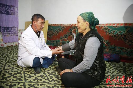 居馬泰·俄白克多年的恩師阿吾爾達(dá)·合德爾現(xiàn)在也是他的病人,這位80多歲的老人向記者說道居馬泰·俄白克翻雪山、過冰河,無數(shù)次遇險(xiǎn),但他仍在堅(jiān)持。把我們這些患者當(dāng)作家人對(duì)待。學(xué)生時(shí)代的居馬泰·俄白克就是思想積極,熱心善良的好孩子。工作后獲得榮譽(yù)受到習(xí)總書記的接見,回到工作崗位上,很多牧民騎馬趕來看望他,他就利用這個(gè)機(jī)會(huì)向牧民宣傳黨的惠民政策、民族團(tuán)結(jié)和健康保健等知識(shí)?!?/p>