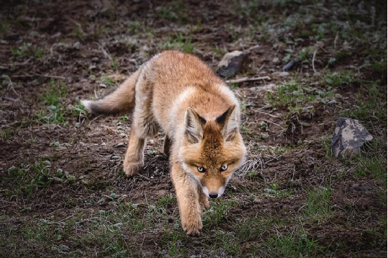 這是一只非常美麗的小赤狐,全身毛色火紅,像涂上了一層油彩,在初升的陽(yáng)光下閃動(dòng)著華麗的光澤。它身段優(yōu)雅,四肢勻稱,兩只靈長(zhǎng)的耳朵神氣地豎立著,那眼神清純靚麗,甚至還有幾分嫵媚。