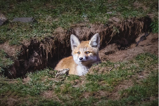 或許是肚子真的餓了,或許是被洞外草原鼠吱吱叫的聲音所吸引,膽大的小家伙又探出小腦袋來(lái),警覺(jué)地向周圍觀望。一會(huì)兒,周圍的草地上沒(méi)有了羊群,草原鼠叫聲也隨之消失,只有山鳥(niǎo)的歌聲清脆嘹亮,一切又顯得寧?kù)o祥和。三只小家伙又悉數(shù)出了洞門,各自蹲在洞口的草地上,眼神中依然是深深的期待。